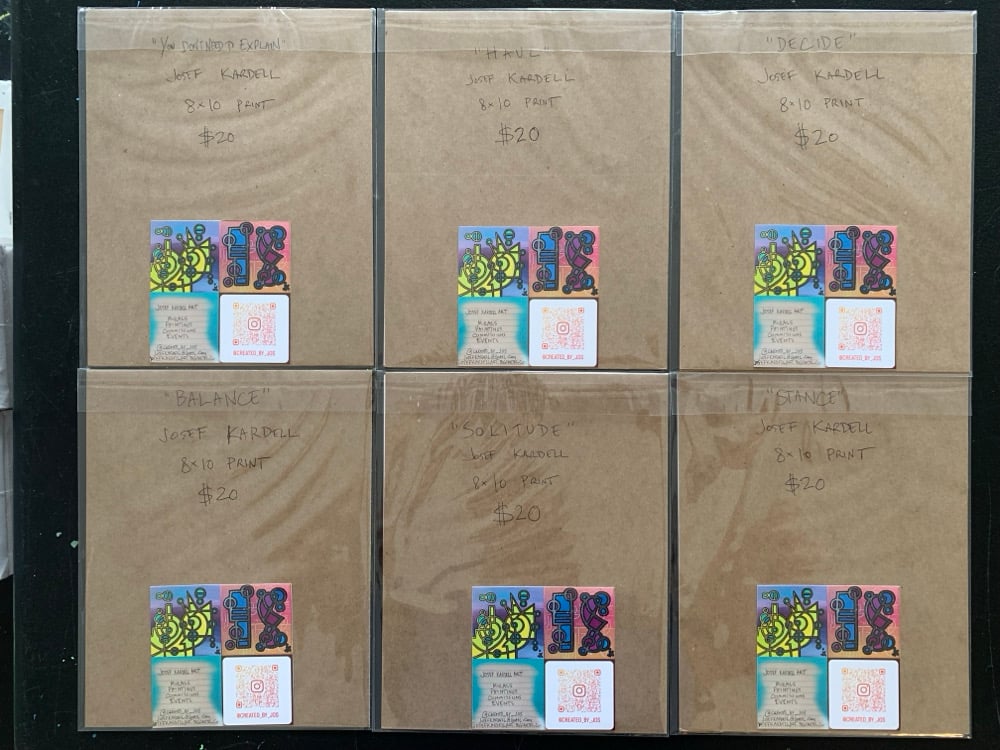 Six 8x10-inch prints (Group B) of Josef Kardell original paintings : “You Don’t Need to Explain” / “Balance” / “Haul” / “Solitude” / “Decide” / “Stance”
